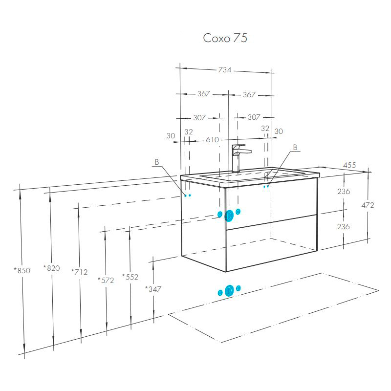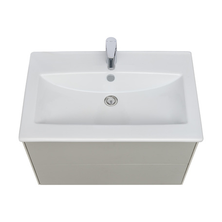 Тумба Сохо 75 функционально состоит из двух вместительных ящиков, оснащенных системой push to open, обеспечивающей надежное, комфортное и бесшумное закрывание. Фасады изделия выполнены из МДФ в пленке в цвете галька серая, корпус из ламинированной влагостойкой ДСП слэйт. Верхний и нижний ящики оснащены системой организации пространства, которая позволяет содержать косметические средства в идеальном порядке. Дополняет тумбу стильная раковина Элина от бренда Santek с удобной чашей. Все внутренние детали тумбы выполнены в цвете антрацит.