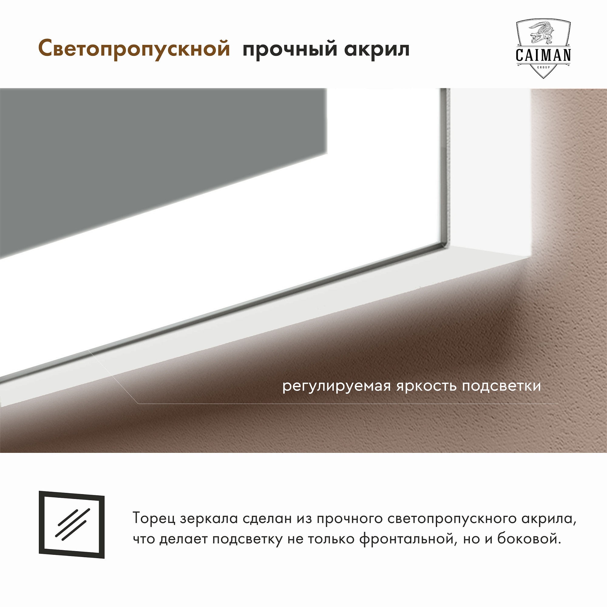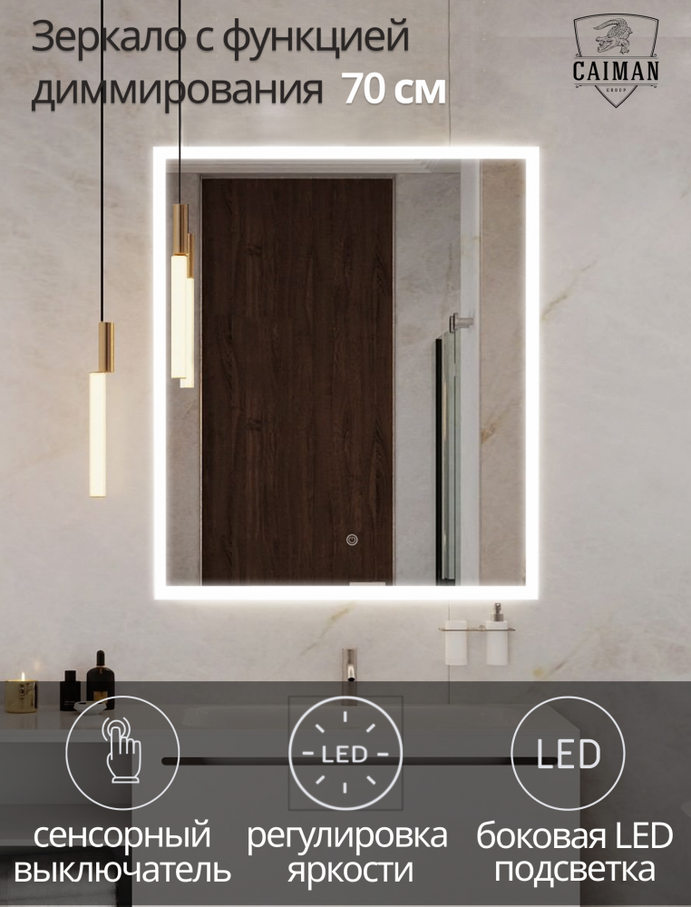 Зекало Родес создает отличное сочетание элегантности и лаконичности в интерьере ванной комнаты. Уникальная комбинация простоты формы и многофоункциональности позволяет совмещать зеркало Родес с любыми на борами мебели и вариантами отделки ванной комнаты. Корпус зеркала сделан из светопропускного пластика, что предполагает наличие не только фронтальной, но и боковой LED подсветки. Данное зеркало доступно в размерах 60, 70, 80, 90 и 100 см. Зеркало оснащено сенсорным выключателем с функцией диммирования, позволяющим настроить яркость освещения