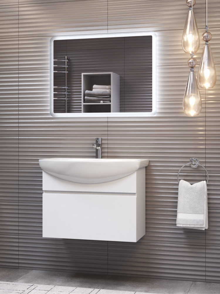 Материал корпуса и фасада: влагостойкая ЛДСП Ящики: направляющие полного выдвижения Отсутствие лицевой фурнитуры – интегрированная в фасад ручка