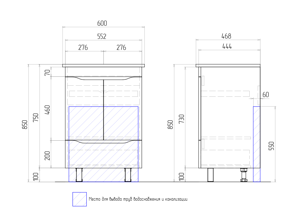 Тумба под раковину Vigo GRANI 600-0-1 подвесная (рак. 120681)