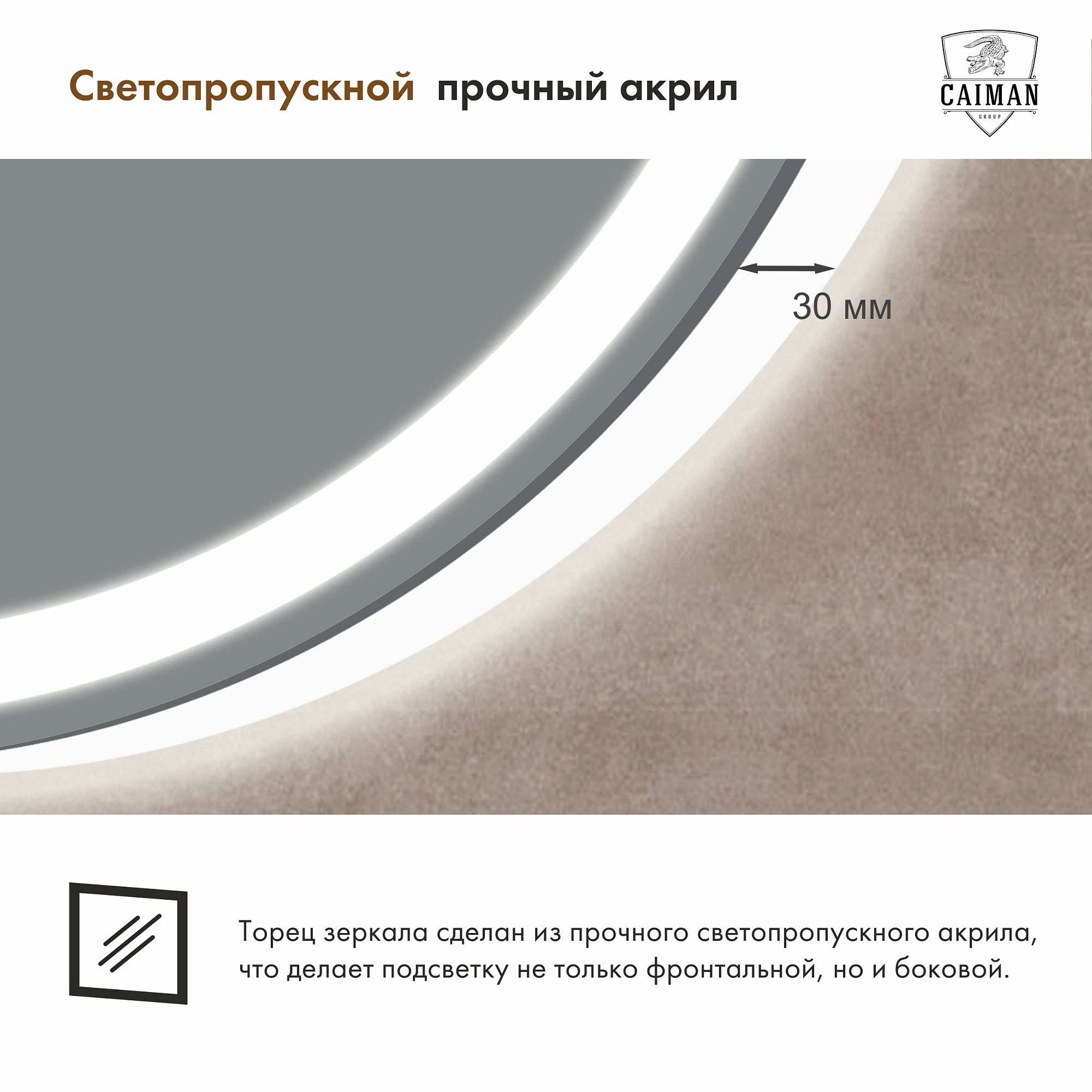 Корпус зеркала сделан из светопропускного пластика, что предполагает наличие не только фронтальной, но и боковой LED подсветки.