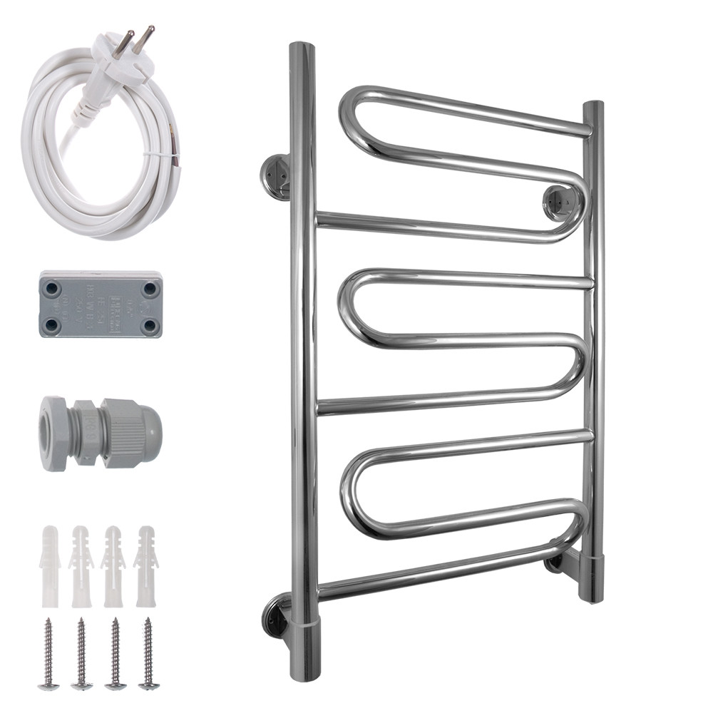 Energy Bravo 800x500 – электрический полотенцесушитель с тремя выпуклыми стационарными греющими секциями в виде змеевика, выполненный из высококачественной пищевой нержавеющей стали.