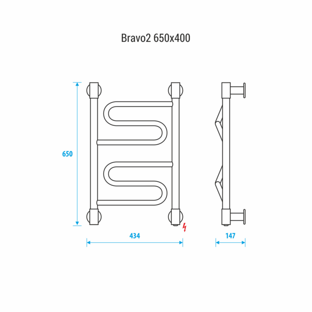 Energy Bravo2 650x400 – электрический полотенцесушитель с двумя выпуклыми стационарными греющими секциями в виде змеевика, выполненный из высококачественной пищевой нержавеющей стали.