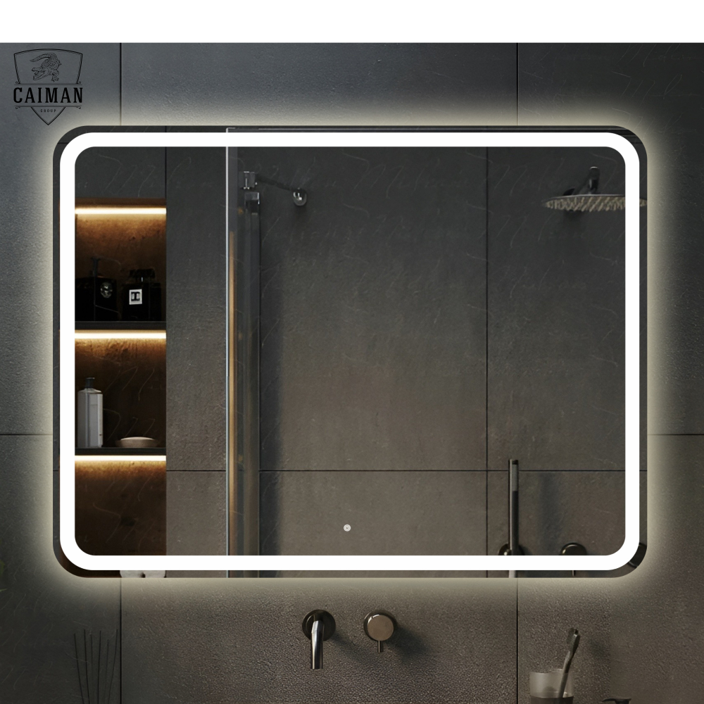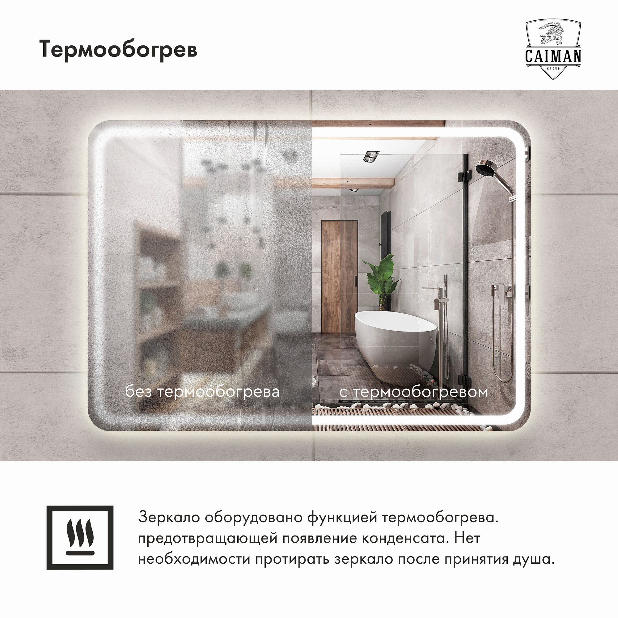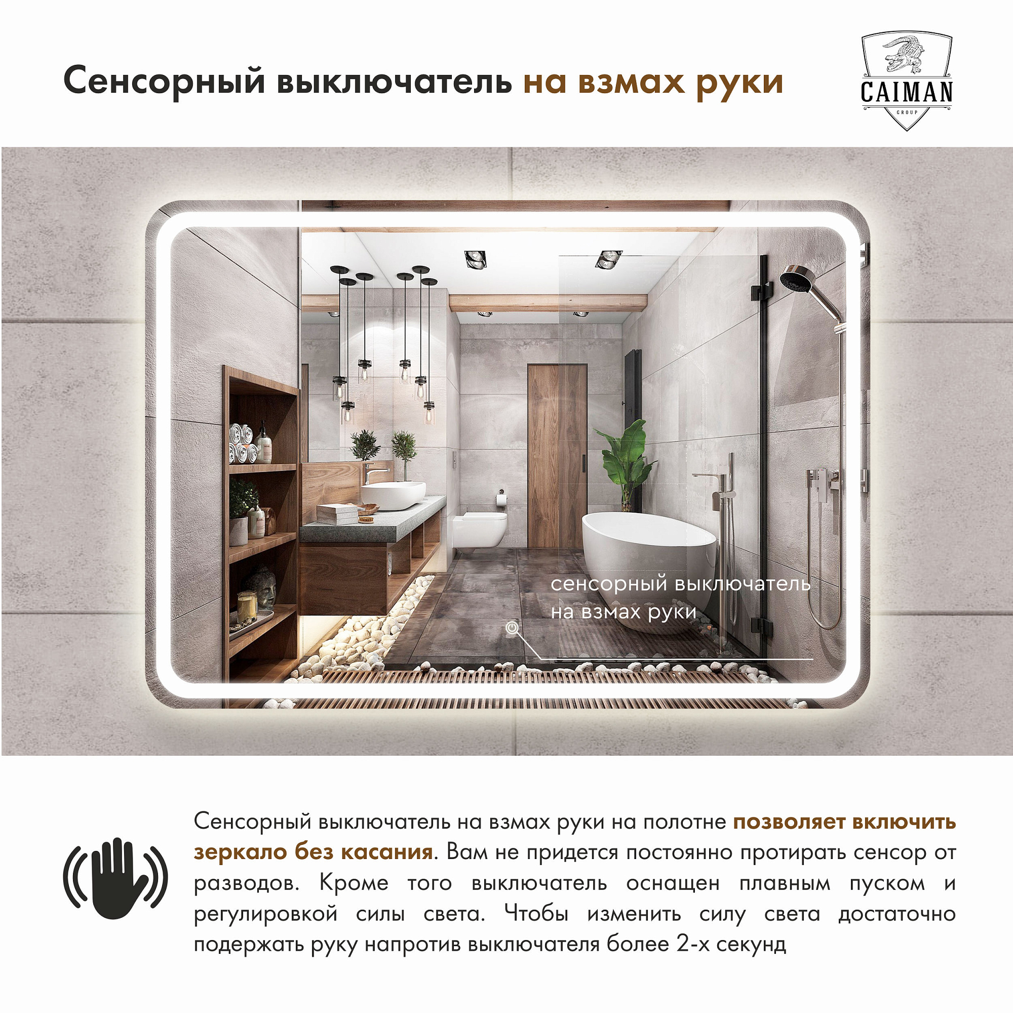 Зеркало Верту прекрасно подойдет для современного интерьера ванной комнаты. Форма со скругленными углами и фоновая подсветка зеркала Верту украсят обстановку в сочетании с любыми наборами мебели и вариантами отделки ванной комнаты. Корпус зеркала сделан из светопропускного пластика, что предполагает наличие не только фронтальной, но и боковой LED подсветки. Данное зеркало доступно в размерах 60, 70, 80, 90 и 100 см. Зеркало оснащено сенсорным выключателем NoTouch. Вам не придется постоянно протирать сенсорный выключатель, так как трогать его не нужно. Просто поднесите к нему руку и загорится свет. При удерживании руки на расстоянии 2 см от сенсора есть возможность изменять силу света, настроив ее под свое восприятие. Кроме того, зеркало оснащено функцией подогрева, что предотвратит его запотевание