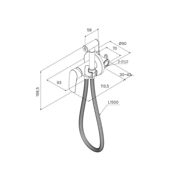 • Гигиеническая лейка из ABS-пластика и душевой шланг из ПВХ (1,5) идут в комплекте.