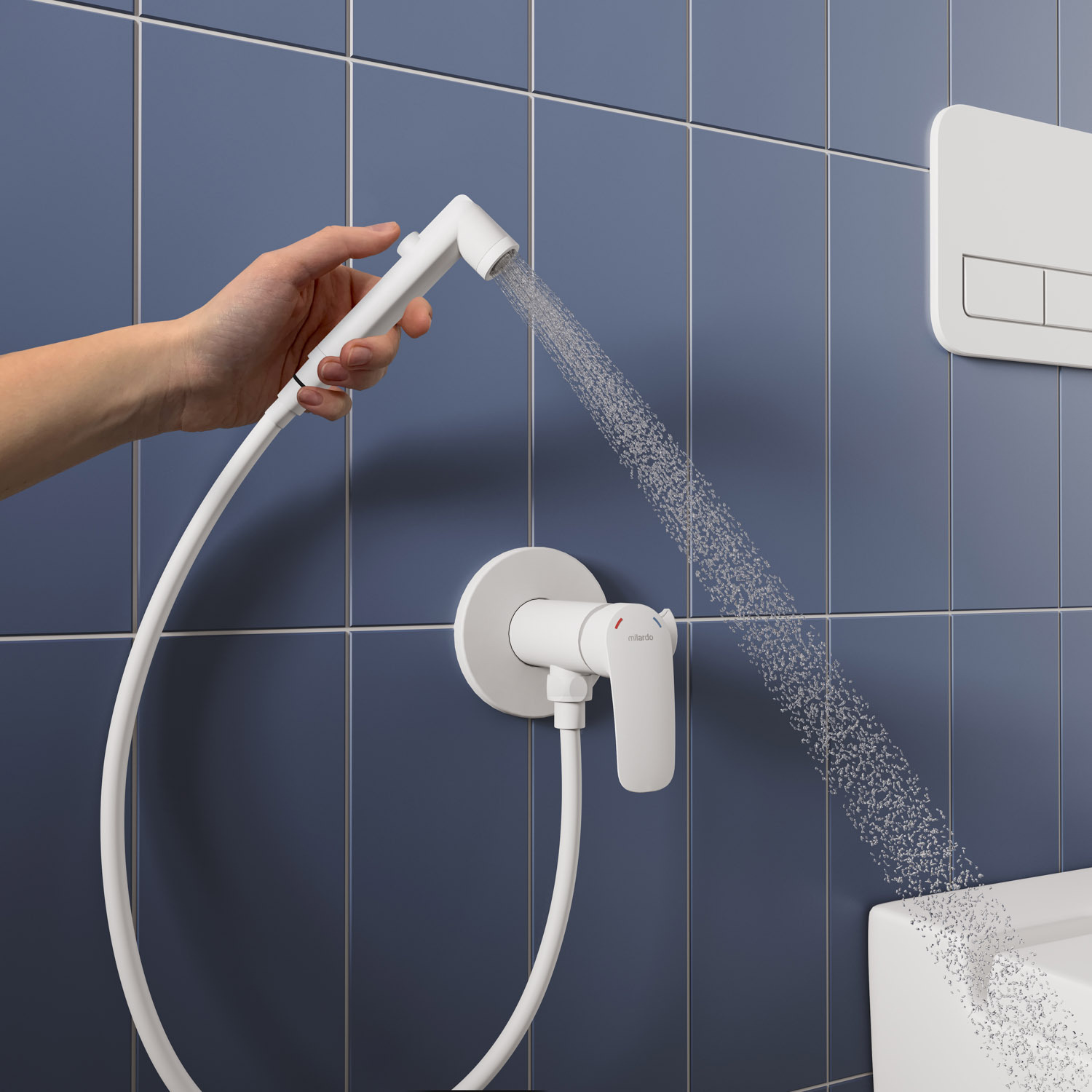 Смеситель с гигиеническим душем Rora отличается универсальным характером: основной акцент в его дизайне приходится на плавные линии корпуса и трендовый белый цвет. Держатель для лейки интегрирован в компактный корпус смесителя – удобно для санузлов небольшой площади. Простое рычажное управление позволяет управлять смесителем в одно движение.