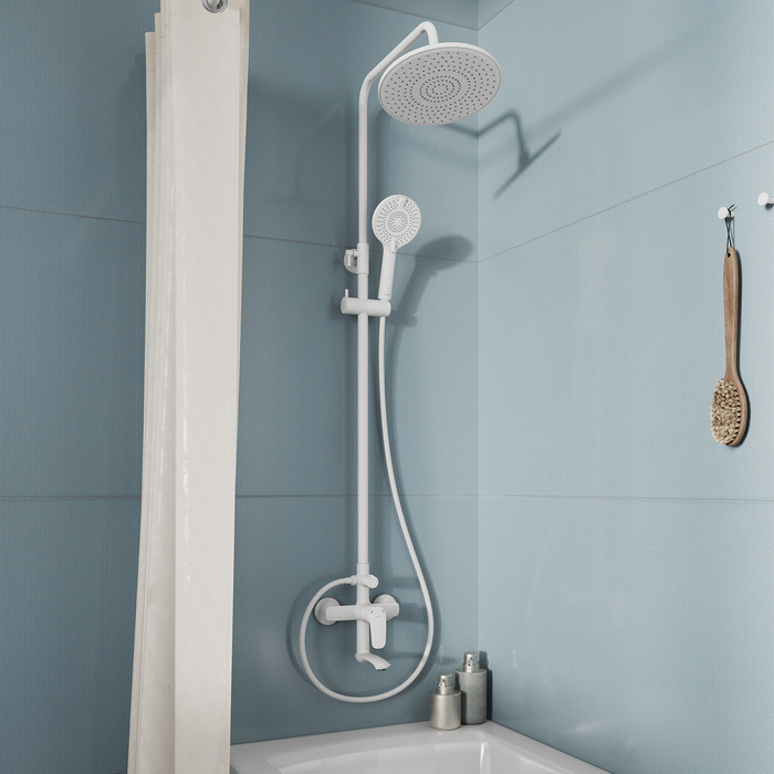• 3-режимная ручная лейка (120 мм) с держателем, душевой шланг (1,5 м), штанга для душа с возможностью регулировки по высоте и крепеж идут в комплекте.