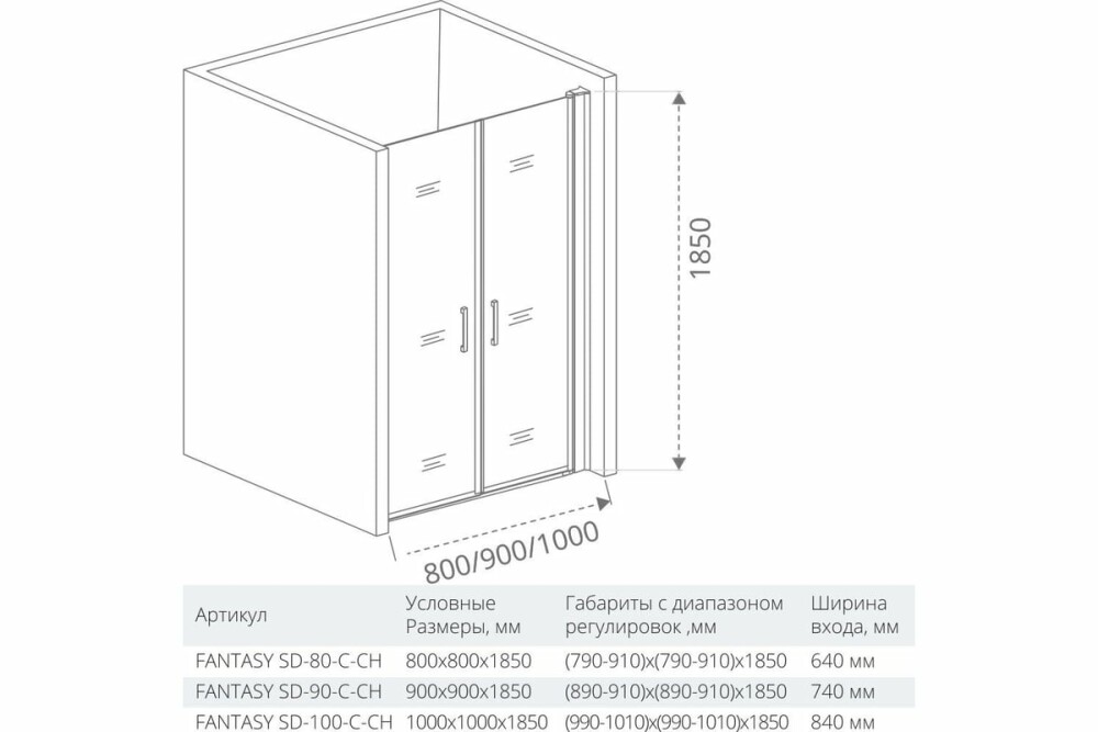 Душевая дверь Good Door FANTASY SD-90-C-CH ФА00020 выполнена из 6-ти миллиметрового закаленного, безопасного стекла с подвижными дверками