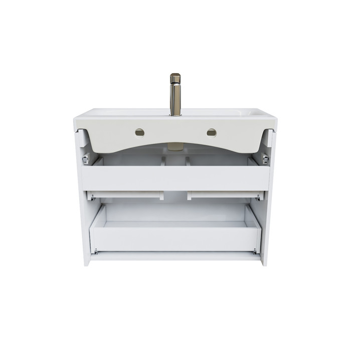Подвесная тумба для ванной комнаты Zodiac с умывальником и ящиками – высокий уровень удобства и практичности в сочетании с лаконичным универсальным дизайном. • Фасад и боковины изготовлены из ЛДСП, покрыты несколькими слоями белоснежной эмали. Такое качественное исполнение обеспечит долгий срок службы мебели во влажном помещении ванной (при соблюдении рекомендаций по уходу). • Керамический умывальник с высоким бортом и большой вместительной чашей в комплекте. Удобен для гигиенических и хозяйственных нужд. • Два вместительных выдвижных ящика с механизмом плавного доведения закрываются плавно и бесшумно. Интегрированные ручки. Фурнитура рассчитана на 30 000 открываний, что составляет более 10 лет исправной работы. • Сифон в комплекте, за счет чего тумба полностью готова к установке. Гарантия на мебель IDDIS® – 3 года. Гарантия на умывальник IDDIS® – 25 лет