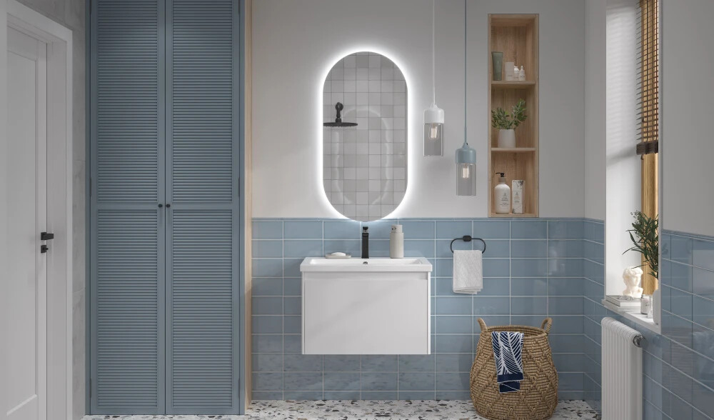 Корпус изделий KLAUFS выполнен из МФД и выгодно отличается от аналогов из ЛДСП. МДФ создает более плотную и надежную структуру материала, не боится воды и выдерживает до 80% влажности. МДФ – наиболее универсальный, экологичный и устойчивый к механическим воздействиям материал для использования в ванной комнате.