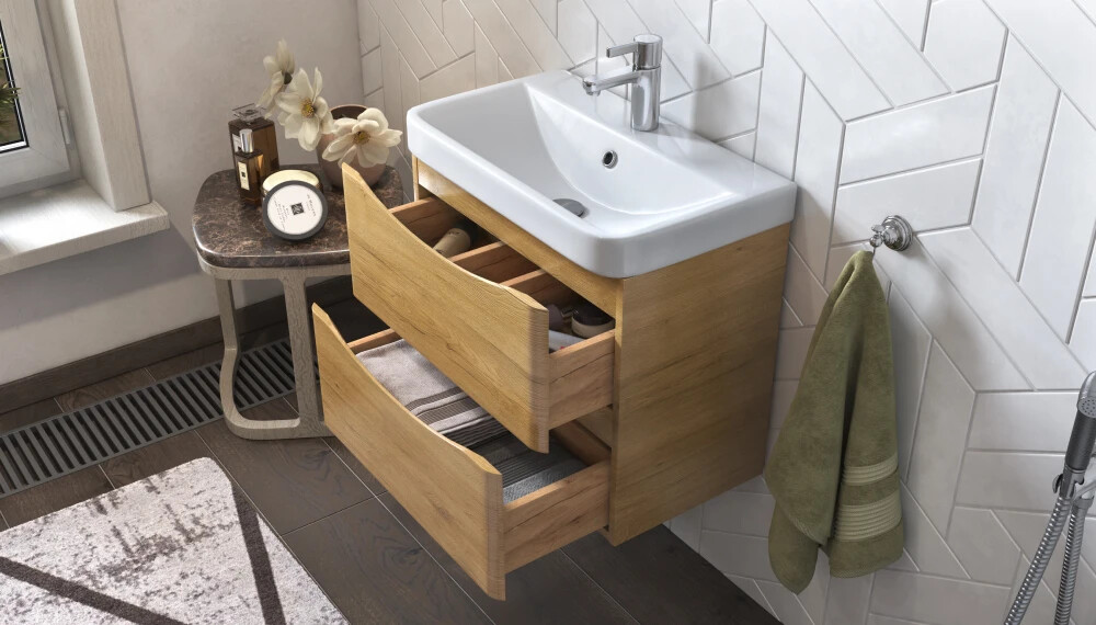 Тумба под раковину Velvex Clay 60. 2Y в цвете «дуб верона» — это стильное и функциональное решение для вашей ванной комнаты. Она изготовлена из качественных материалов и имеет продуманную конструкцию, которая обеспечивает удобство использования и долговечность. Одним из ключевых преимуществ этой тумбы являются направляющие полного выдвижения Hettich с системой плавного закрывания. Благодаря им вы сможете легко и без усилий открывать и закрывать ящики, а также быть уверенными в том, что они не будут резко захлопываться и издавать громкие звуки. Это особенно важно для семей с детьми или пожилыми людьми, которые ценят комфорт и безопасность. Ещё одним преимуществом является специально спроектированное место под раковину, защищённое термопластичным покрытием. Оно позволяет легко устанавливать раковину и обеспечивает надёжную фиксацию, предотвращая возможные протечки и повреждения. Это гарантирует долговечность и надёжность всей конструкции, а также избавляет от необходимости частого ремонта. Тумба под раковину Velvex Clay 60. 2Y станет отличным выбором для тех, кто ценит качество, комфорт и стиль. Она гармонично впишется в любой интерьер и будет радовать вас своим внешним видом и функциональностью на протяжении многих лет