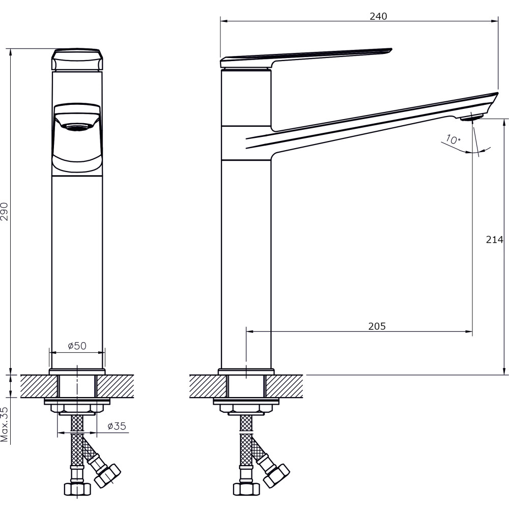 Смеситель для кухни RUSH арт. BE5535-22 с поворотным изливом из коллекции Bering изготовлен из высококачественной латуни и имеет рычажное управление. В смеситель установлен картридж D-35 с керамическими пластинами. Высота смесителя 290 мм. Излив поворотный, 205 мм. Высота излива до аэратора 214 мм. Аэратор изготовлен из пластика с нержавеющим корпусом, угол наклона аэратора- 10 гр. В комплекте гибкая подводка с латунными гайками 45 см - 2шт, универсальная присоединительная группа для установки на горизнтальную поверхность, фум-лента, индивидуальный пакет, паспорт, гарантийный талон