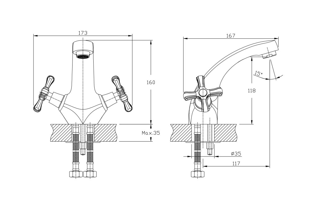 Гибкая проводка с латунными гайками 35 см - 2 шт
