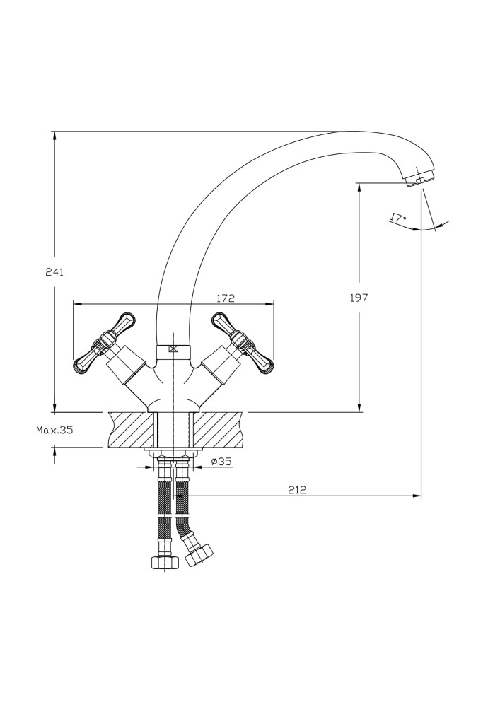 Длина излива: 21.2 см Керамическая кран-букса Вентильное управление