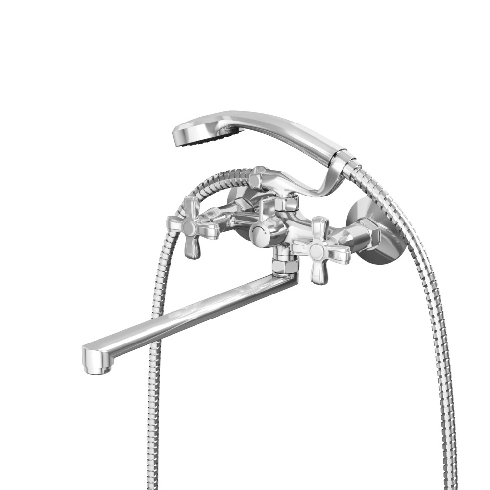 смеситель для ванны и душа с душевой лейкой и шлангом. держатель душевой лейки. с дополнительным аэратором. фум-лента. индивидуальный пакет. паспорт. гарантийный талон.