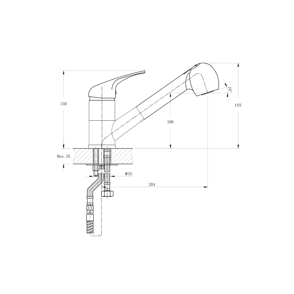 Смеситель для кухни с вытяжным изливом RUSH арт.CO4240-25 из коллекции Corsica c металлической ручкой имеет рычажное управление. В смеситель установлен картридж D-40 (RSH202) с керамическими пластинами. Высота смесителя 155 мм. Излив вытяжной поворотный 360гр, 204мм. Высота излива до аэратора 106 мм. Аэратор изготовлен из пластика с нержавеющим корпусом, угол наклона аэратора- 18 гр. В комплекте гибкая подводка с латунными гайками 35см - 2 шт., универсальная присоединительная группа (шпилька-2шт), шланг с латунными гайками 1,5м, фум-лента, индивидуальный пакет, паспорт, гарантийный талон