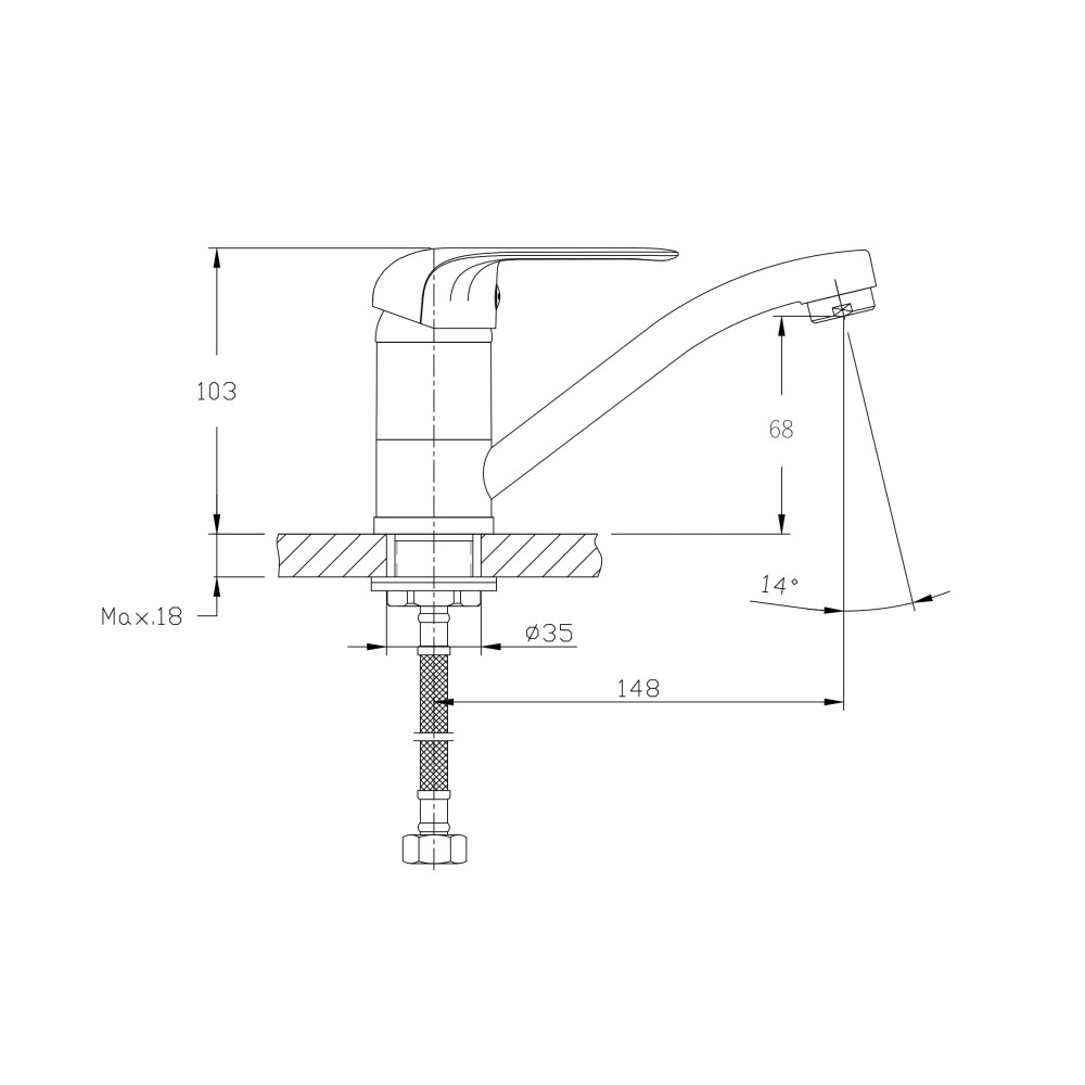 Смеситель для кухни с поворотным изливом RUSH арт.FI1835-26 из коллекции Fiji c металлической ручкой и имеет рычажное управление. В смеситель установлен картридж D-35 (RSH102) с керамическими пластинами. Высота смесителя 103 мм. Излив поворотный 360гр, 148 мм. Высота излива до аэратора 68 мм. Аэратор изготовлен из пластика с нержавеющим корпусом, угол наклона аэратора -14 гр. В комплекте гибкая подводка с латунными гайками 35см - 2 шт., присоединительная гайка S-30мм, втулка-27мм, фум-лента, индивидуальный пакет, паспорт, гарантийный талон