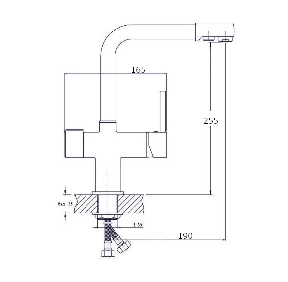 Смеситель для кухни с подключением к фильтру с питьевой водой RUSH арт. MS9035-31 с металлической ручкой из коллекции изготовлен из высококачественной латуни и имеет рычажное управление. В смеситель установлен картридж D-35 с керамическими пластинами. Излив поворотный, 195 мм. Высота излива до аэратора 253 мм. Аэратор изготовлен из пластика с нержавеющим корпусом. В комплекте кран-букса с керамическими пластинами (для крана с питьевой водой) гибкая подводка с латунными гайками 35 см - 2шт, универсальная присоединительная группа, фум-лента, индивидуальный пакет, паспорт, гарантийный талон