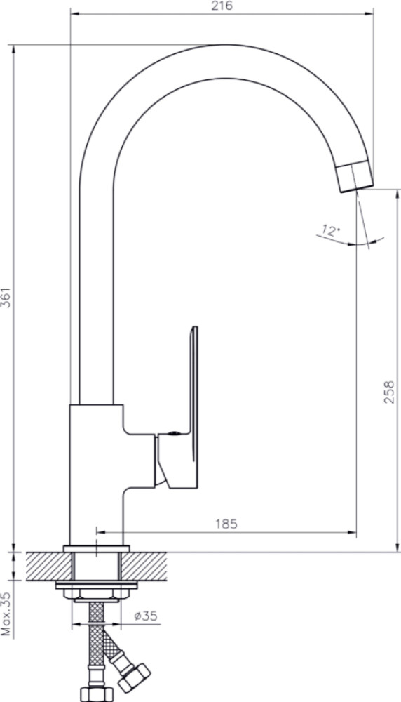 Смеситель для кухни с высоким поворотным изливом RUSH арт. HA1935-22 с металлической ручкой из коллекции Haiti изготовлен из высококачественной латуни и имеет рычажное управление. В смеситель установлен картридж D-35 с керамическими пластинами. Высота смесителя 361 мм. Излив поворотный, 185 мм. Высота излива до аэратора 258 мм. Аэратор изготовлен из пластика с нержавеющим корпусом, угол наклона аэратора- 12 гр. В комплекте гибкая подводка с латунными гайками 35 см - 2шт, универсальная присоединительная группа для установки на горизонтальную поверхность, фум-лента, индивидуальный пакет, паспорт, гарантийный талон