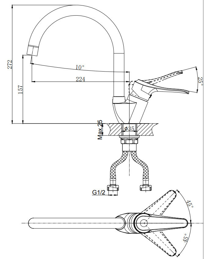 Длина излива: 22.4 см