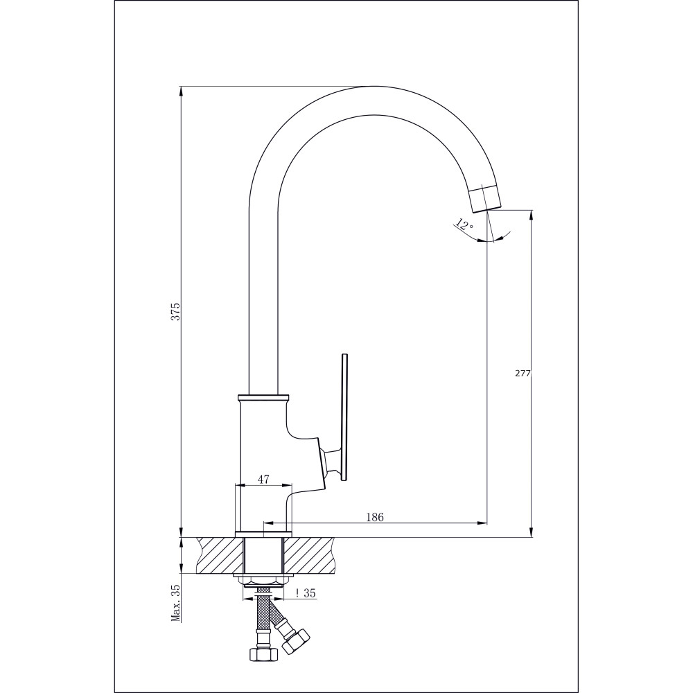 Смеситель для кухни RUSH арт. PL2530-22 с поворотным изливом из коллекции PALM с металлической ручкой, изготовлен из высококачественной латуни и имеет рычажное управление. В смеситель установлен картридж D-30 с керамическими пластинами. Высота смесителя 375 мм. Излив поворотный 186 мм. Высота излива до аэратора 277 мм. Аэратор изготовлен из пластика с нержавеющим корпусом, угол наклона - 12 гр