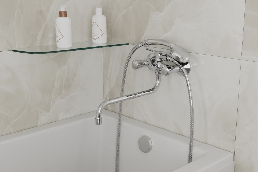 Смеситель для ванны RUSH арт.PI7950-51 с поворотным изливом из коллекции Pioneer изготовлен из высококачественной латуни и имеет вентильное управление. Излив изготовлен из нержавеющей стали В смеситель установлены кран-буксы (RSH502) с керамическими пластинами, а также дивертор (переключатель) с керамическими пластинами. Пластиковый аэратор с нержавеющим корпусом. Излив поворотный 360гр. 285 мм. В комплекте однорежимная душевая лейка и душевой шланг длиной 1,5м., держать душевой лейки, латунные эксцентрики фум-лента, индивидуальный пакет, паспорт, гарантийный талон