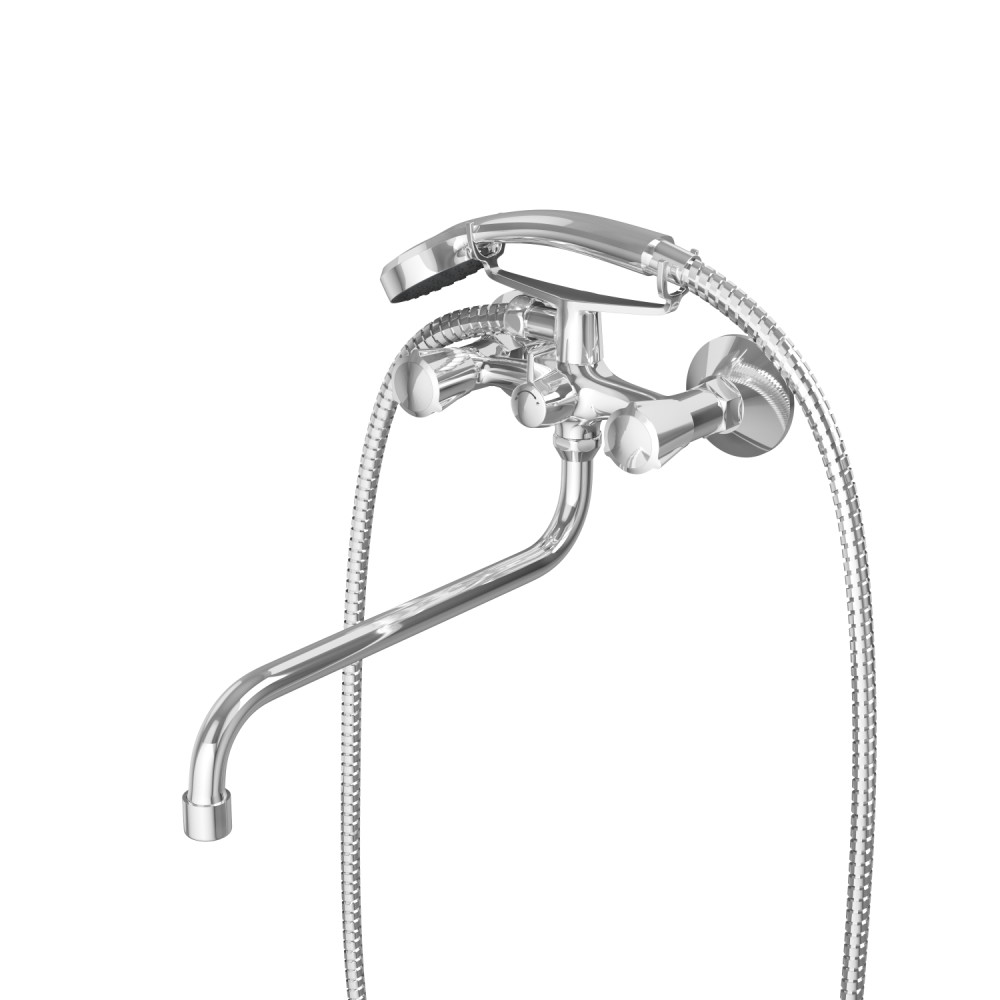 смеситель для ванны и душа с душевой лейкой и шлангом. держатель душевой лейки. с дополнительным аэратором. фум-лента. индивидуальный пакет. паспорт. гарантийный талон.