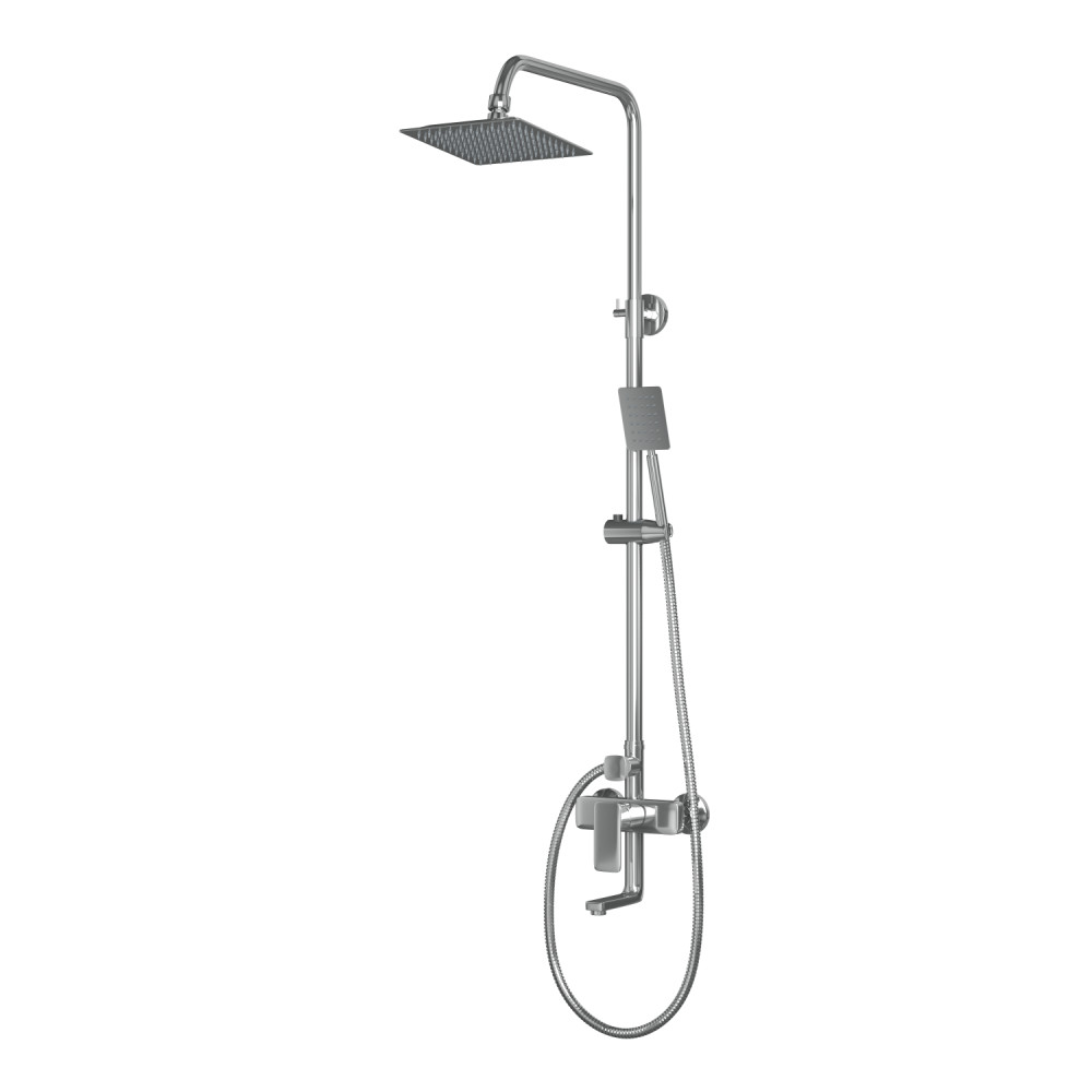 В комплекте 1- режимная душевая лейка. 1-режимный тропический душ. изготовленный из современной прочной пластмассы с никель-хромированным покрытием. душевая штанга. держатель душевой лейки. душевой шланг с латунными гайками 150см. смеситель. индивидуальный пакет. паспорт. гарантийный талон