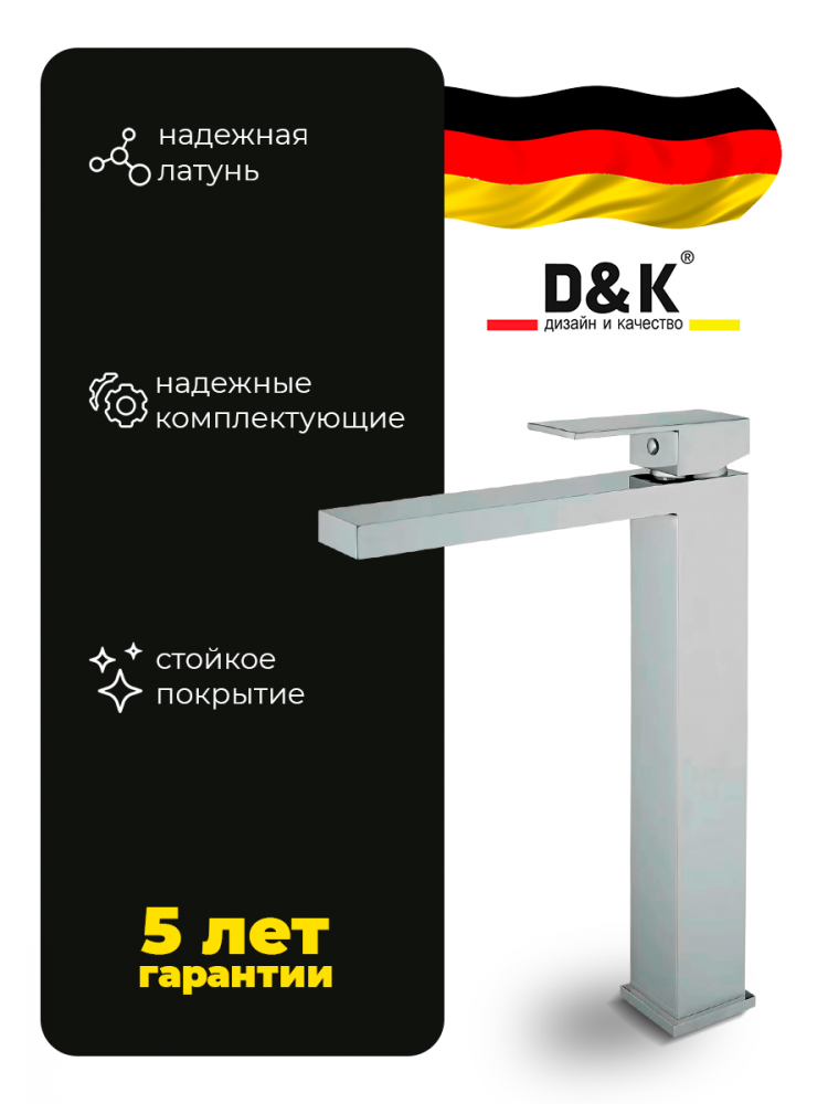 Смеситель для раковины D&K Bayern.Liszt DA1512001 Liszt - современный и актуальный дизайн, вобравший в себя ключевые тренды и отвечающий реальным запросам сегодняшнего дня с выбором популярных цветовых решений глянцевый хром и loft-black поможет создать идеальную кухню и ванную комнату каждому. - Бесплатное гарантийное обслуживание - 10 лет; - Смесители из латуни высокого качества, безопасны для людей и домашних животных из-за пониженного содержания свинца; - Блестящее хромированное покрытие обладает высокими защитными и декоративными свойствами; - Протестирован на 500 000 циклов включения, что составляет более 30 лет повседневного использования, семьи из четырёх человек; - Аэратор Neoperl экономит воду за счет смешивания с воздухом, струя становится ровнее и мягче, снижая уровень шума; - Гибкая подводка 40 см идёт в комплекте для быстрой установки