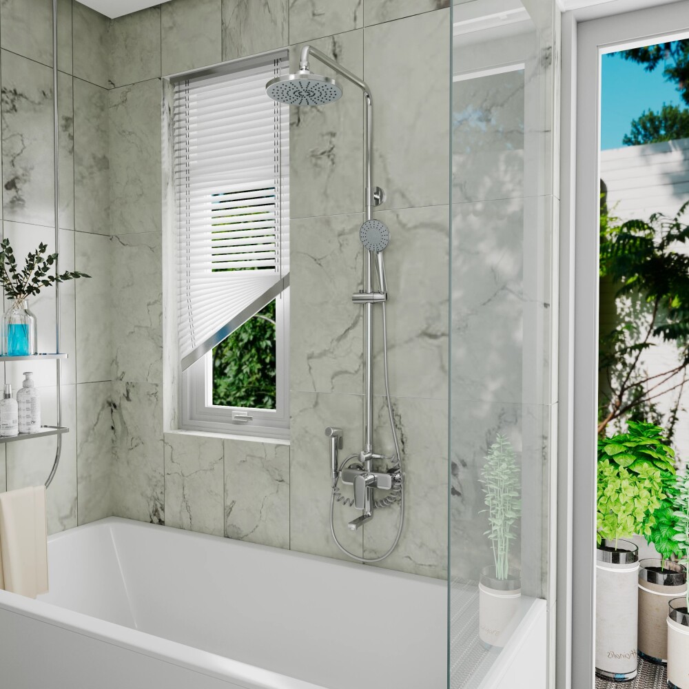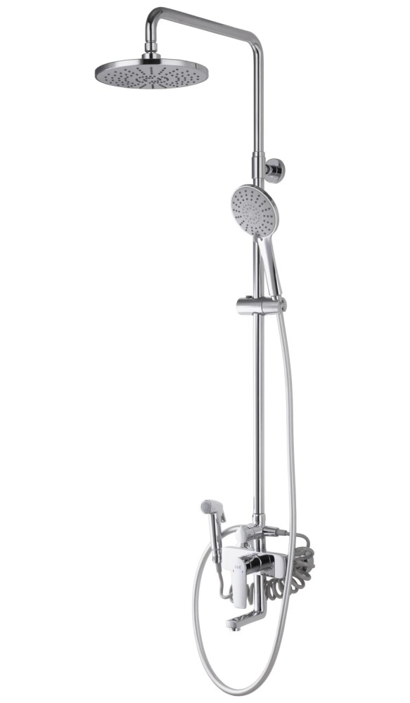 Смеситель. эксцентрики-2шт. декоративная шайба (отражатель)-2шт. штанга. крепление для штанги. кронштейн для верхнего душа. шланг душевой. лейка душевая. держатель душевой лейки. гигиенический душ. паспорт