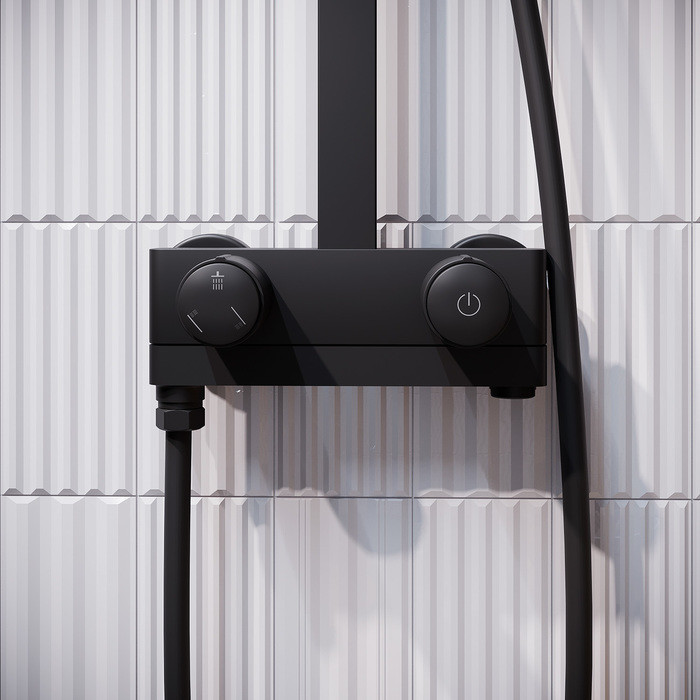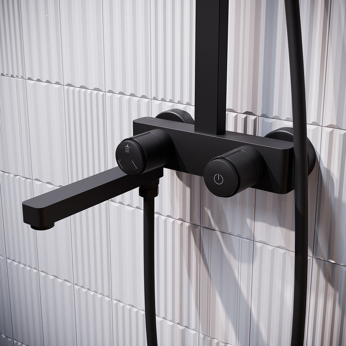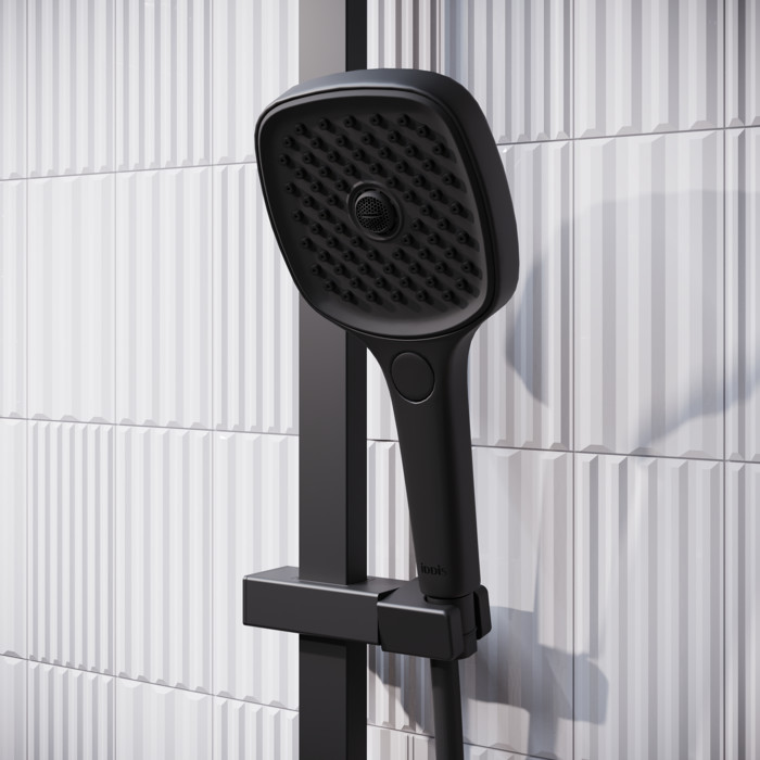 Смеситель Slide для ванны с верхним душем и инновационным кнопочным управлением Push Control – комбинация элегантного дизайна и современных технологий и функций, которые делают пребывание в ванной максимально комфортным и приятным. • Две ручки-кнопки обеспечивают полный контроль над управлением и функциями смесителя. Правая включает-выключает смеситель нажатием на кнопку и регулирует температуру при повороте вправо-влево. Левая позволяет настроить нужный напор воды – уникальная функция, обычно в смесителях с кнопочным управлением напор воды стандартный и не регулируется. Левая кнопка также переключает поток воды между верхней и ручной лейкой одним нажатием. • В основании излива скрыт дивертор: когда он повернут в сторону ванны, вода течет из излива, когда он сложен под корпус (что еще и эстетично и удобно) поток воды переключается на лейки. • Ручная лейка благодаря особому строению форсунок (в каждой по три микроотверстия) и большому размеру делает поток воды объемным и мягким. Мощная струя из центра лейки