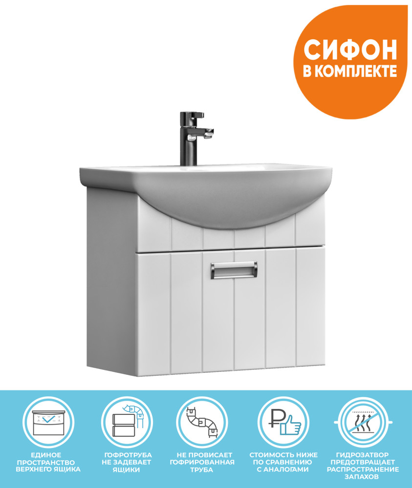 Тумба подвесная с раковиной Vigo Diana 1-600 — стильное и компактное решение для современных ванных комнат. Эта модель сочетает функциональность и минимализм, сохраняя при этом вместительность и удобство хранения.