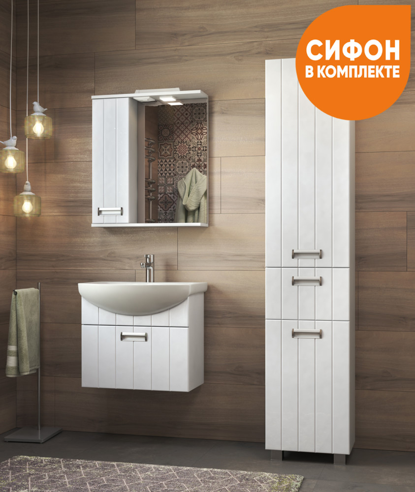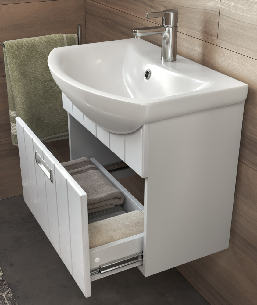 -Стильный дизайн — белый фасад с покрытием ПВХ и хромированная ручка гармонично сочетаются с современным интерьером ванной.