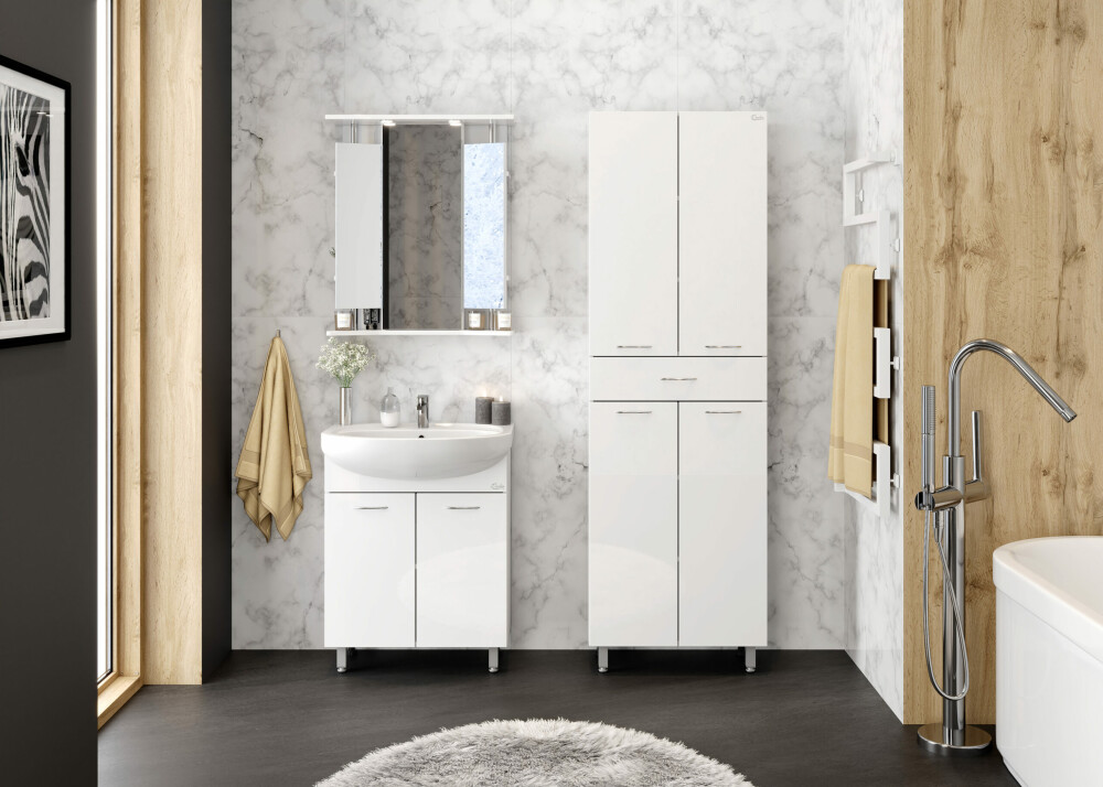 Напольный пенал для ванной комнаты Onika МОДЕРН 60, благодаря простому минималистичному дизайну и белому глянцевому фасаду, подойдет под любой интерьер ванной комнаты.