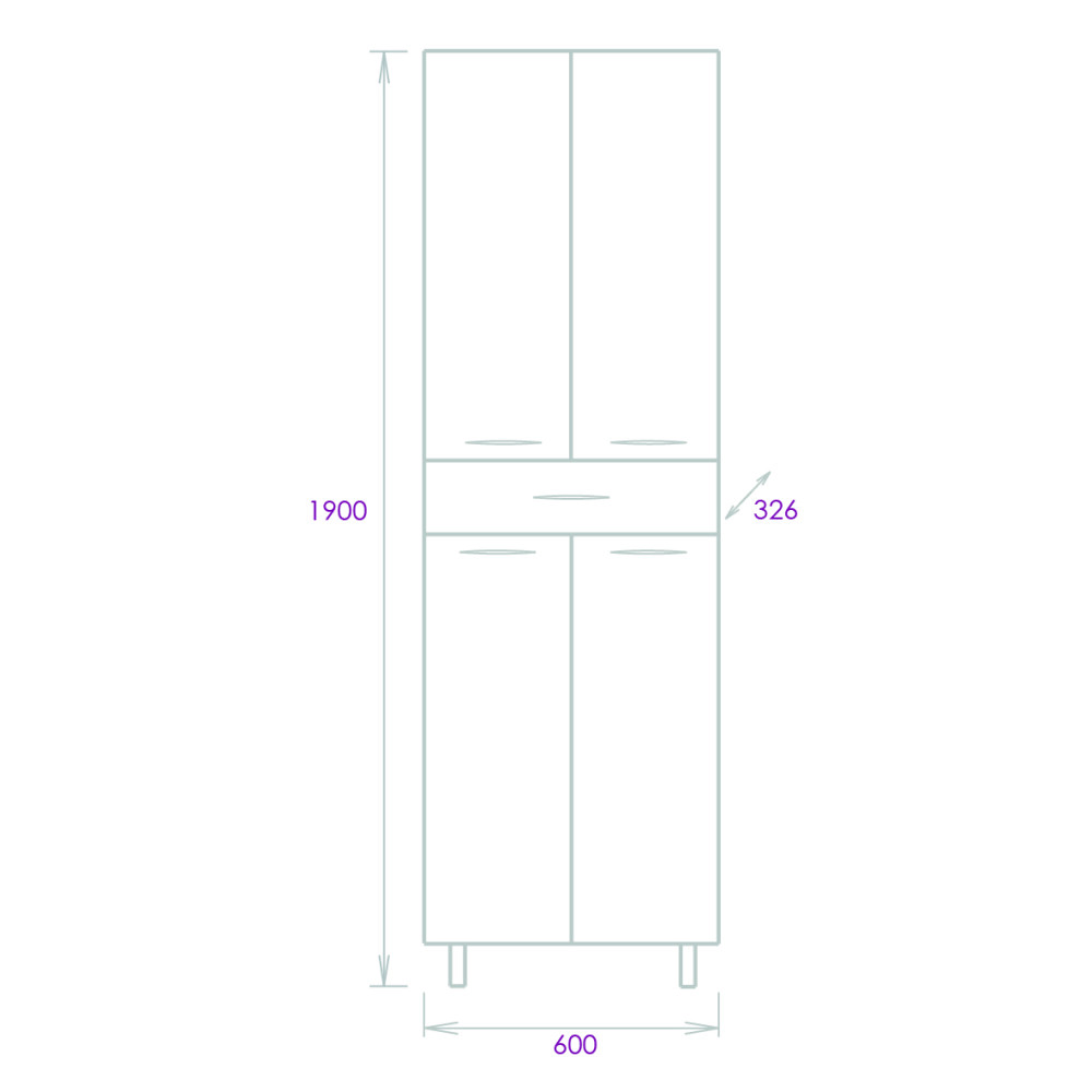 Конструкция пенала предусмотрела огромное пространство для хранения, в котором поместятся все необходимые вещи: большой выдвижной ящик посередине + 4 дверцы, скрывающие полки. Полки регулируются по высоте, дверцы оснащены механизмом плавного закрывания, а ящик - направляющими полного выдвижения.