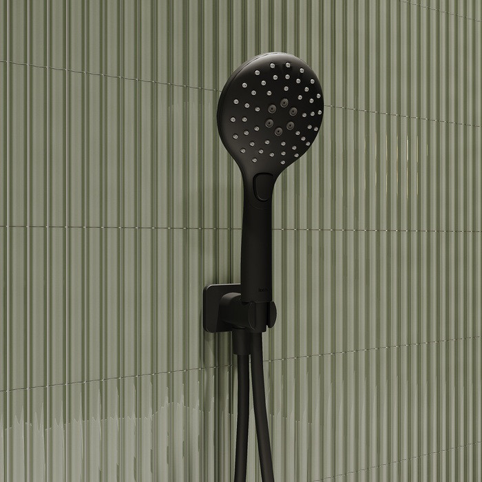 • Оптимальная подборка сантехники Ray: смеситель, верхняя лейка с кронштейном для тропического душа, настенный излив, большая ручная лейка с 3 режимами, душевой шланг 1,5 м и выход для подключения шланга с держателем для лейки.