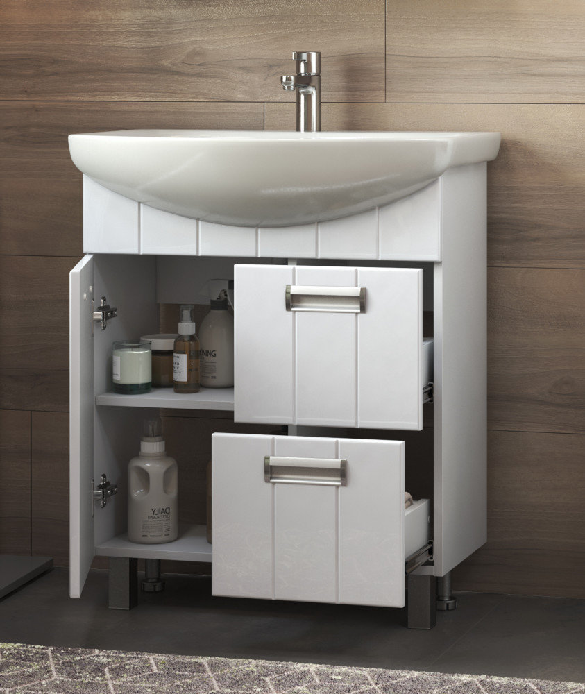 -Тумба с раковиной напольная — устойчивая конструкция, не требующая сложного монтажа.