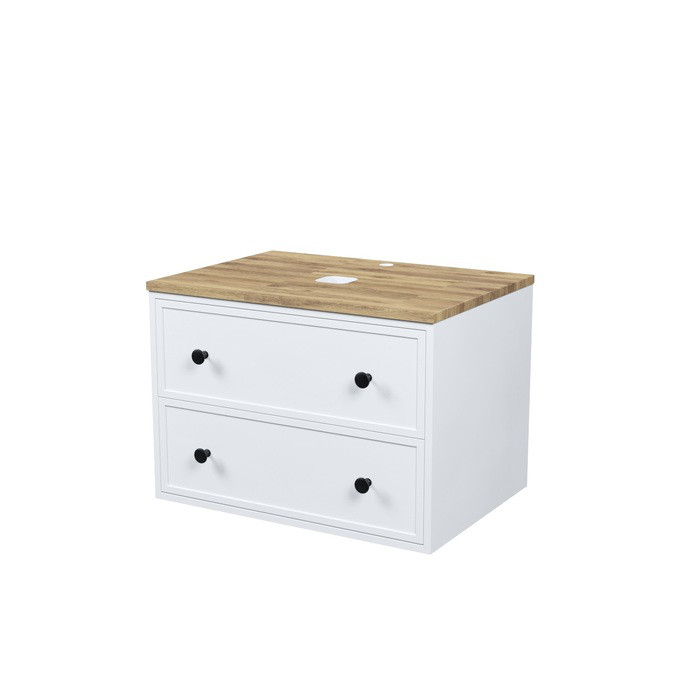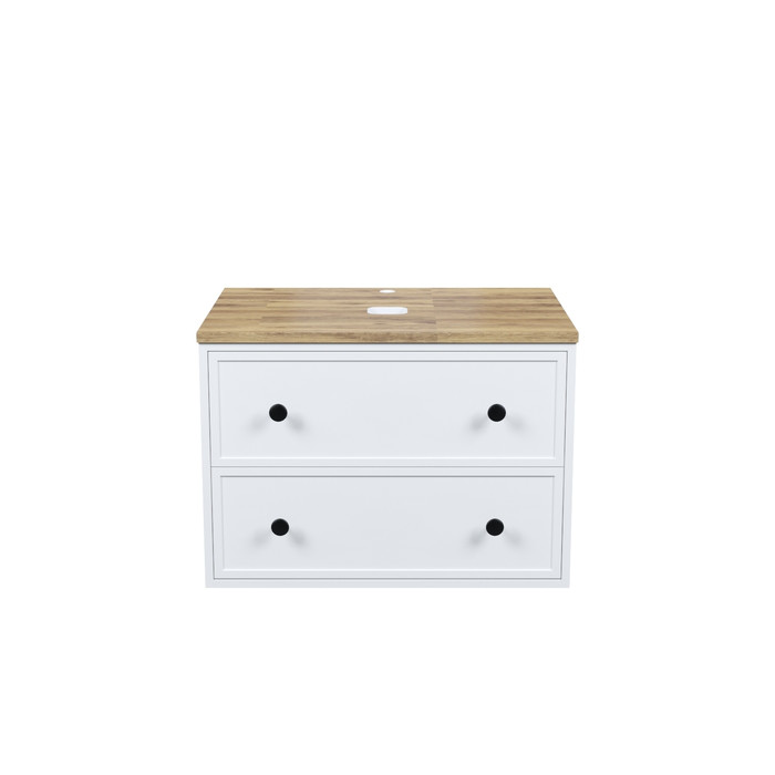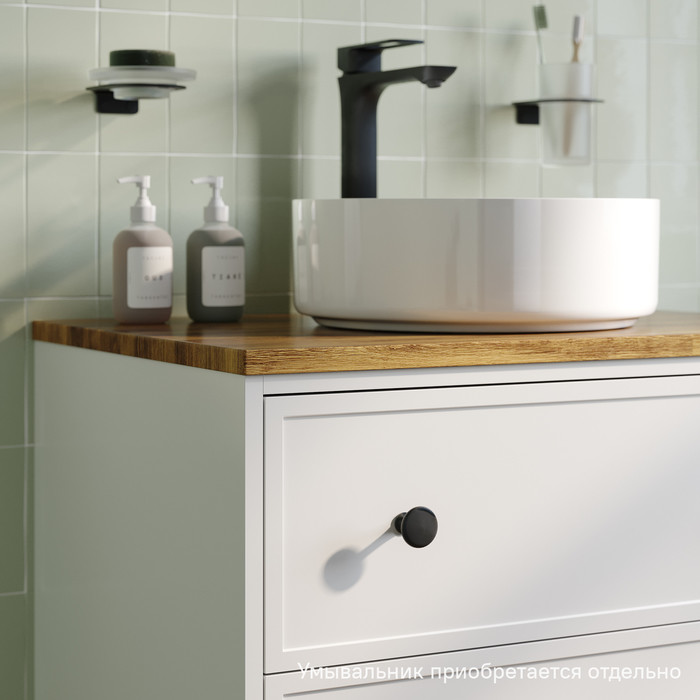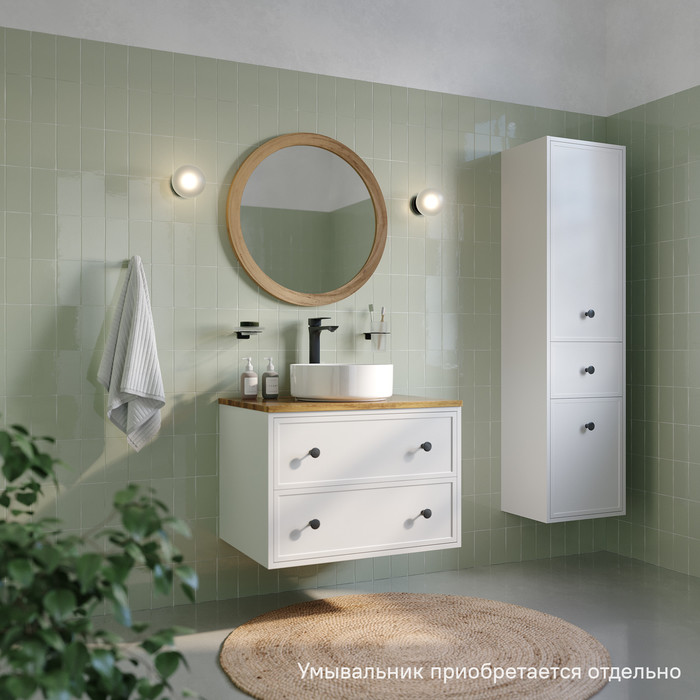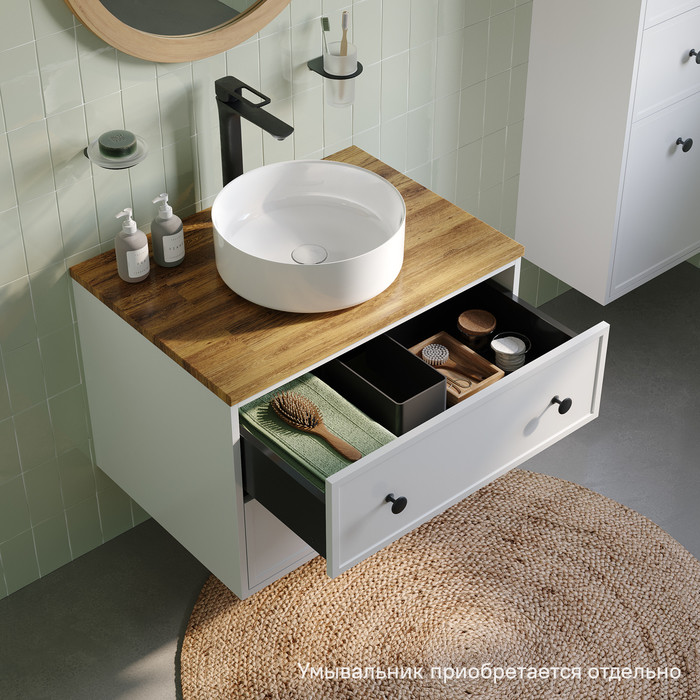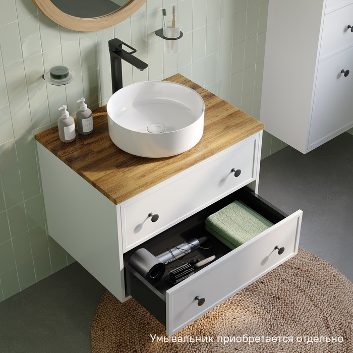 Компактная подвесная тумба Torr классического молочно-белого цвета со столешницей из клееного натурального дуба. Сочетает в себе узнаваемый стиль и практичность популярного скандинавского дизайна. Ее четкие формы, теплый цвет дерева, фасады с декоративной филенкой, круглые ручки смотрятся гармонично и впишутся в любой современный интерьер. Подойдет любой накладной умывальник, покупается отдельно.•Два просторных выдвижных ящика закрываются плавно и бесшумно благодаря высококачественным скрытым направляющим с доводчиками Hettich. Внутри ящики графитового цвета – стильно и практично. •Многослойное покрытие матовой эмалью, предназначенной для использования в помещениях с высокой влажностью, позволит сохранить первоначальный вид мебели надолго (при должном уходе). •Надежная фурнитура Hettich рассчитана на 30 000 открываний – это более 10 лет исправной работы.Гарантия на мебель IDDIS® – 3 года.(с) Авторский текст, сентябрь 2023 г