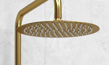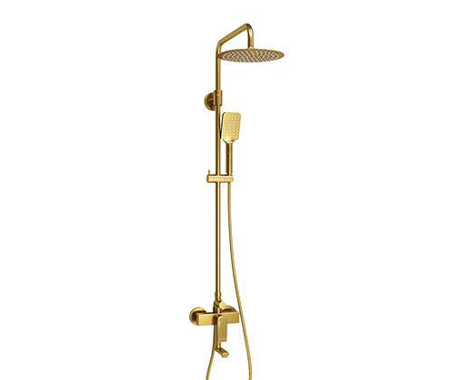 Душевая насадка для комплекта производится из нержавеющей стали. Форсунки из силикона с системой защиты от известковых отложений. Насадка крепится к стойке при помощи шарнирного соединителя, внутрь которого встроен сетчатый аэратор для равномерного распределения воды. Также шарнирный соединитель позволяет менять угол наклона душевой насадки от 0 до 22 градусов.