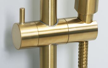 Удлинители помогут скорректировать высоту душевого комплекта. Рекомендуем до начала монтажа душевого комплекта проверить, комфортна ли вам будет высота, на которой будет располагаться верхняя душевая насадка. Для этого выдвиньте стойку на максимум и приложите к стене, ориентируясь на высоту подключения смесителя к воде. Если высоты оказалось недостаточно, то вы можете дополнительно подключить удлинитель. В данном случае необходимо спланировать все отверстия с учетом установки удлинителя для душевого комплекта. Если после монтажа душевого комплекта Вы устанавливаете удлинитель, то вам необходимо перенести только верхнее крепление и сделать новые отверстия для него.