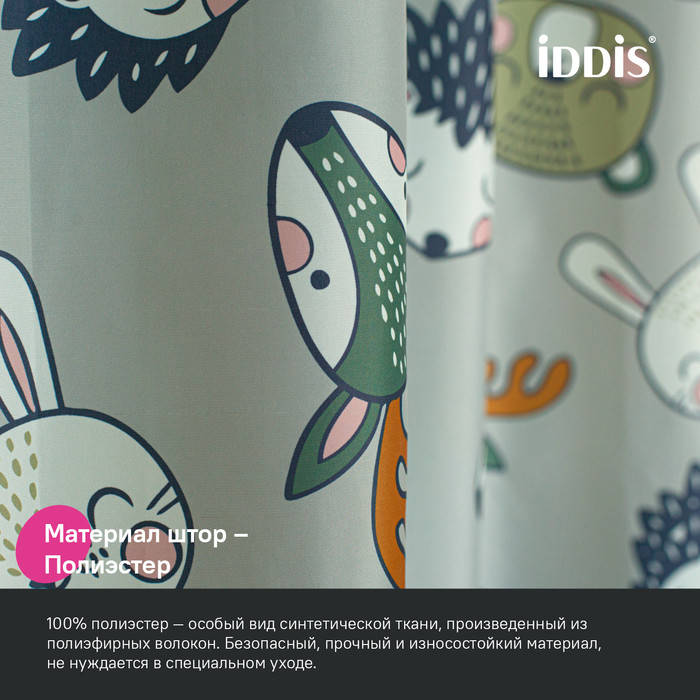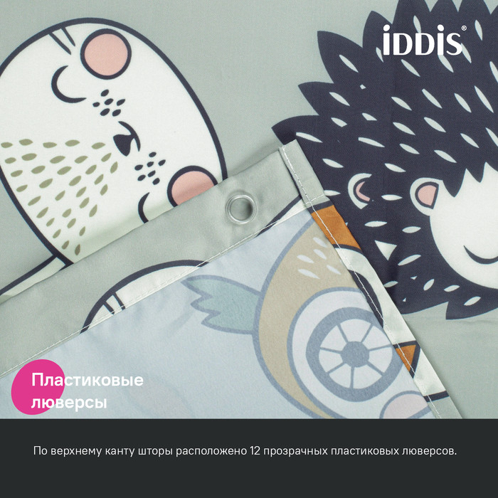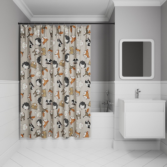Текстильная штора для ванной светло-серого цвета с милым принтом в виде мордочек лесных зверей. Идеально подойдет для детской или семейной ванной комнаты. •Изготовлена из износостойкого полиэстера с водоотталкивающей пропиткой. При попадании на ткань вода не впитывается, а скатывается каплями, даже при сильном напоре воды. •В комплекте 12 колец С-формы из прозрачного пластика. •По верхнему краю расположены 12 прозрачных пластиковых люверсов. •Штора имеет утяжеляющую нить по нижнему краю, которая позволяет избежать задирания ткани.•Легко ухаживать: шторку для ванной комнаты можно стирать в стиральной машине в деликатном режиме и гладить утюгом на минимальной температуре.Гарантия на текстильные аксессуары IDDIS® – 1 год. (с) Авторский текст, сентябрь 2023 г