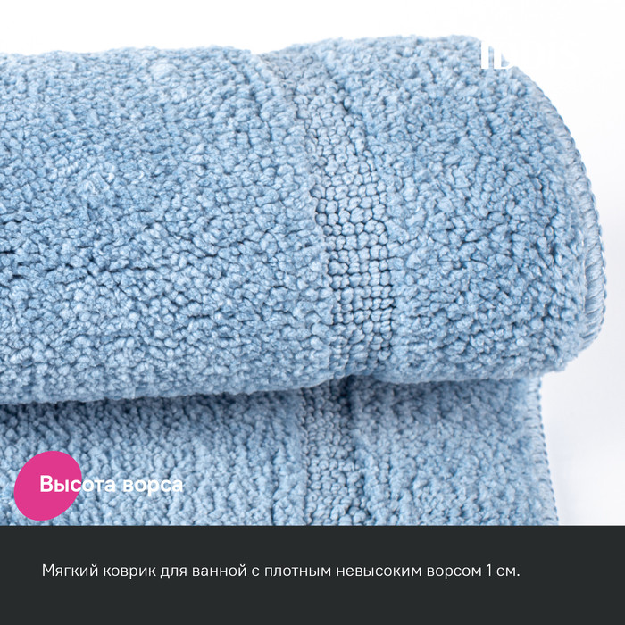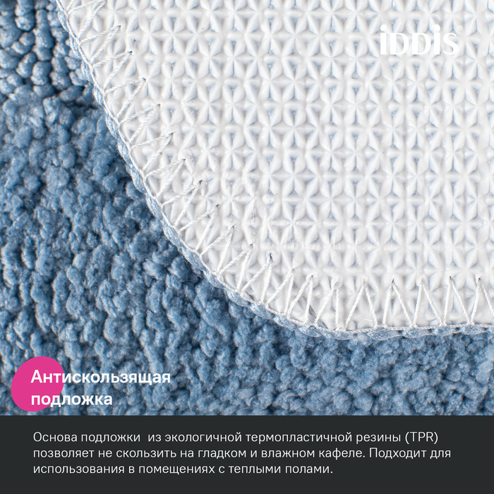 Набор из двух мягких ковриков для ванной нежного голубого цвета с плотным невысоким ворсом (1 см), очень приятных на ощупь. Ворс из микрофибры отлично держит форму, легко чистится и быстро сохнет. Коврики предназначены для ванной и для туалета (маленький коврик имеет вырез под унитаз). •Коврики в ванную противоскользящие: основа из экологичной термопластичной резины (TPR) позволяет не скользить на гладком и влажном кафеле. Подходят для использования в помещениях с теплыми полами. •Благодаря современным влагостойким материалам и качественной обработке краев коврики не потеряют яркости красок, не обветшают и надолго останутся привлекательными как в день покупки.•Несложно ухаживать: разрешена деликатная стирка при температуре до 40оС с жидким моющим средством; не сушить на батарее, избегать солнечных лучей.Гарантия на текстильные аксессуары IDDIS® – 1 год. (с) Авторский текст, июнь 2023 г
