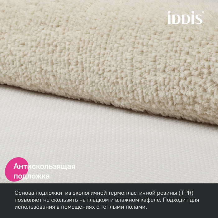 Набор из двух мягких ковриков для ванной теплого бежевого цвета с плотным высоким ворсом (2 см), очень приятных на ощупь. Стриженый ворс из микрофибры отлично держит форму, легко чистится и быстро сохнет. Коврики предназначены для ванной и для туалета (маленький коврик имеет вырез под унитаз). •Коврики в ванную противоскользящие: основа из экологичной термопластичной резины (TPR) позволяет не скользить на гладком и влажном кафеле. Подходят для использования в помещениях с теплыми полами. •Благодаря современным влагостойким материалам и качественной обработке краев коврики не потеряют яркости красок, не обветшают и надолго останутся привлекательными как в день покупки.•Несложно ухаживать: разрешена деликатная стирка при температуре до 40 градусов с жидким моющим средством; не сушить на батарее, избегать солнечных лучей.Гарантия на текстильные аксессуары IDDIS® – 1 год. (с) Авторский текст, август 2023 г