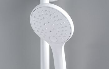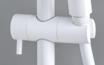 Стойку для душа можно регулировать по высоте. Для этого необходимо выдвинуть верхнюю часть стойки и зафиксировать на необходимой Вам высоте при помощи гайки верхнего крепления.