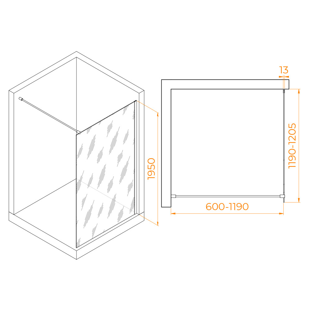 Высота перегородки: 195 см — обеспечивает комфортное использование душевой зоны.