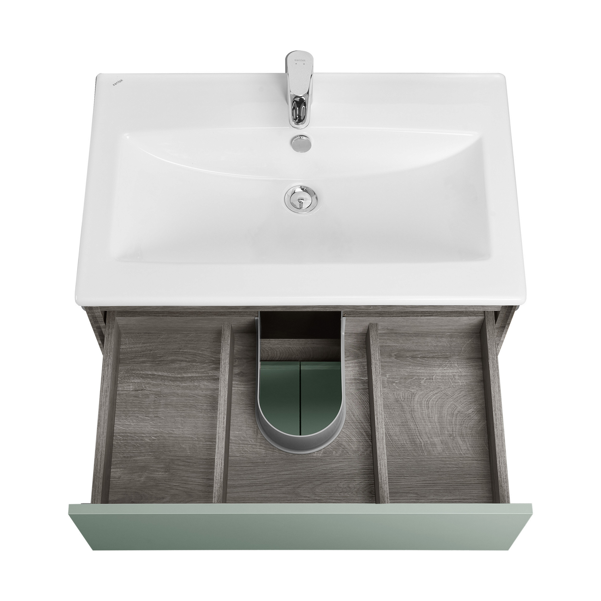 Коллекция мебели ФОРЕСТ вдохновлена природными мотивами и выполнена в естественных оттенках. Минималистичный сдержанный дизайн позволяет органично вписать ее в большинство современных интерьеров. В тумбе максимально удобная эргономика: функциональный ящик и вместительно пространство за фасадами-створками. В ящике организована система хранения для удобного и комфортного использования: две регулируемые планки. Верхняя часть фасада-створки обработана под ручку L-профиль, за створками скрываются две полочки, одна из которых регулируемая, а также немного утоплена внутрь для комфортного хранения высоких предметов. Тумбы коллекции ФОРЕСТ могут устанавливаться как на опоры, так и в подвесном варианте: в комплект входят две регулируемые опоры. Раковины "Элина" отличаются не только лаконичным и элегантным дизайном, который сочетается с любым интерьером ванной комнаты, но и высокой практичностью. Умывальник оснащен отверстием под смеситель и отверстием под перелив. Предназначены для установки на тумбу. Широкий бортик позволяет разместить различные аксессуары. Размер 75 позволяет использовать умывальник в ванных комнатах различной площади