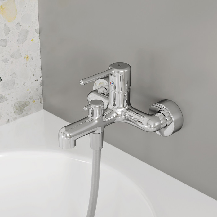 Стильный смеситель для ванны сочетает актуальный современный дизайн и классический цвет хрома. Тонкая удлиненная ручка добавляет изящества и комфорт в управлении. Расстояние между ручкой и изливом увеличено для большего удобства. Без душевых аксессуаров в комплекте.