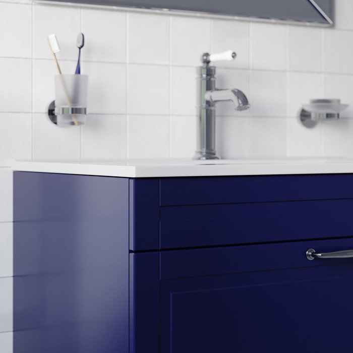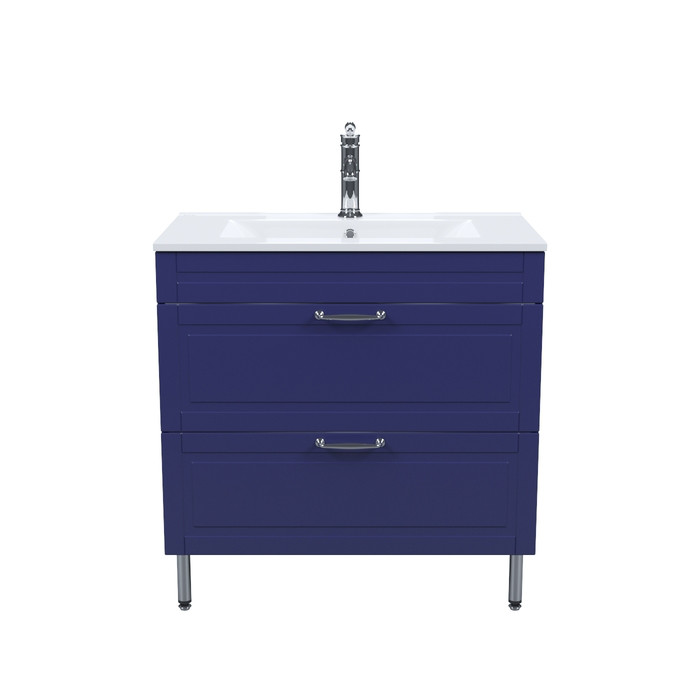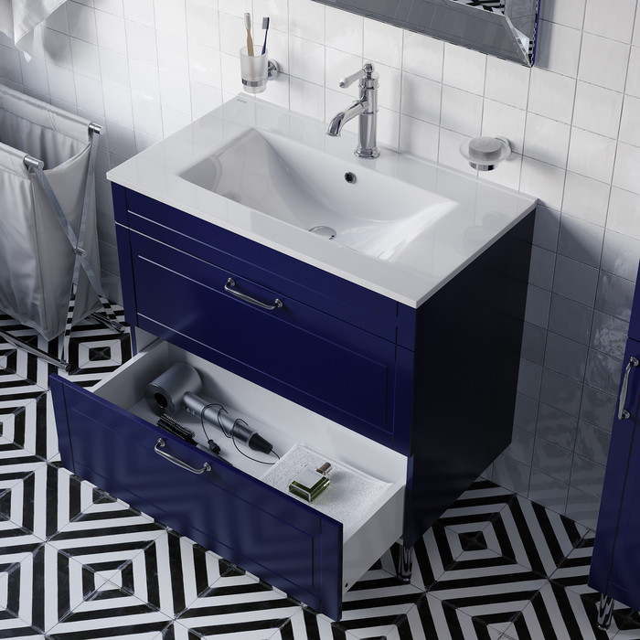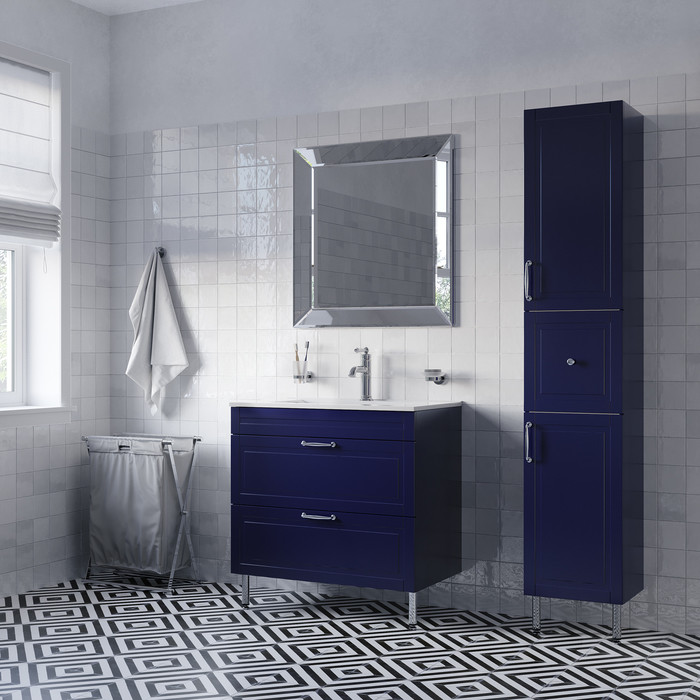 Напольная тумба Oxford в красивом синем оттенке – модное сочетание классического стиля и стиля ретро. Она органично впишется в интерьер благодаря элегантному фрезерованному фасаду и узнаваемому дизайну. В комплекте плоский эргономичный умывальник.•Два просторных выдвижных ящика закрываются плавно и бесшумно благодаря высококачественным скрытым направляющим с доводчиками немецкого производства.•Хромированные ножки и ручки дополняют цвет фасада и сочетаются с дизайном одноименных смесителей IDDIS® и смесителей в стиле ретро. Несложно подобрать все необходимое для создания гармоничного интерьера.•Поверхность фасадов бархатистая, приятная на ощупь. Это ощущение создает полуматовая полимерная эмаль с эффектом soft touch. •Фурнитура рассчитана на 30 000 открываний – это более 10 лет исправной работы.Гарантия на мебель IDDIS® – 3 года.(с) Авторский текст, август 2023 г