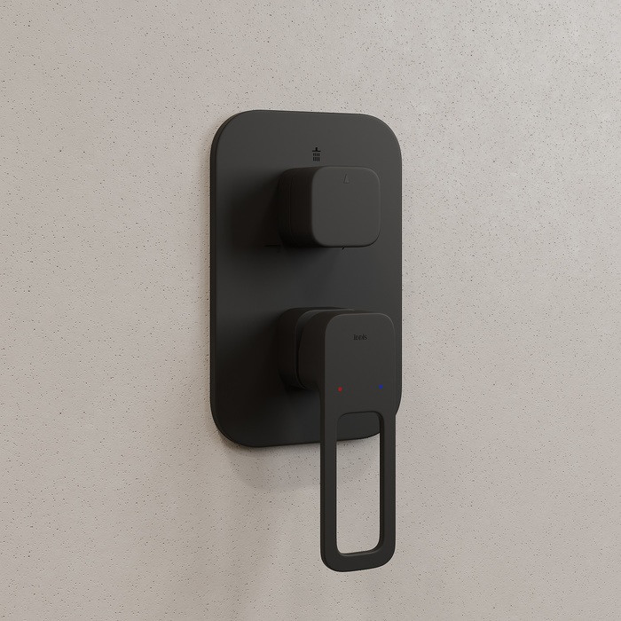 Встраиваемый в стену смеситель Slide в черном цвете для ванны или душевой зоны – стильное современное решение для ванной комнаты. Предназначен для подключения трех душевых аксессуаров на ваш выбор.