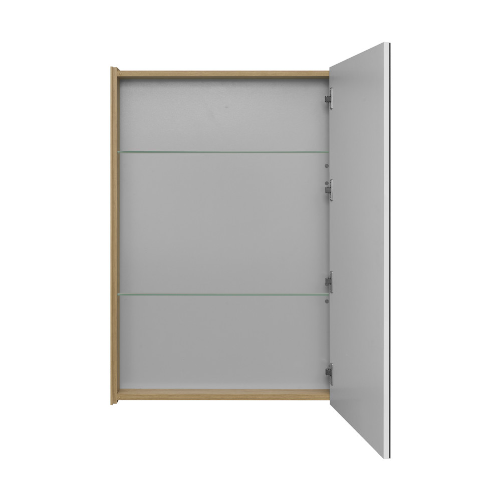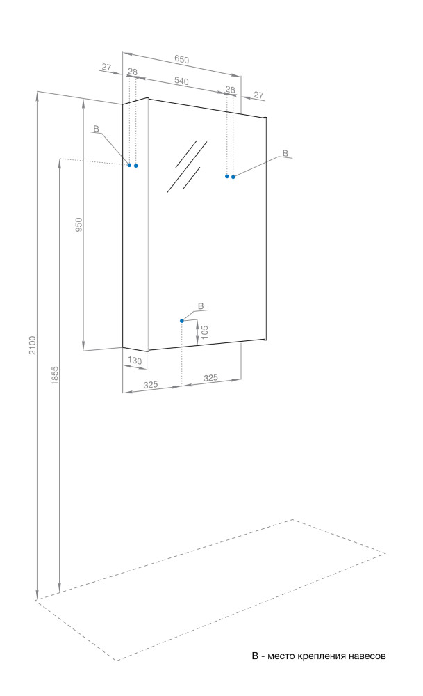 Зеркальный шкаф оснащен 3 регулируемыми стеклянными полочками, которые установлены на специальные фиксаторы, предотвращающих опрокидывание.